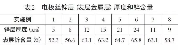 (5)電沉積鋅:再按照表2進行常規的電沉積工藝加工,可獲得具有表層金屬層的粗坯。